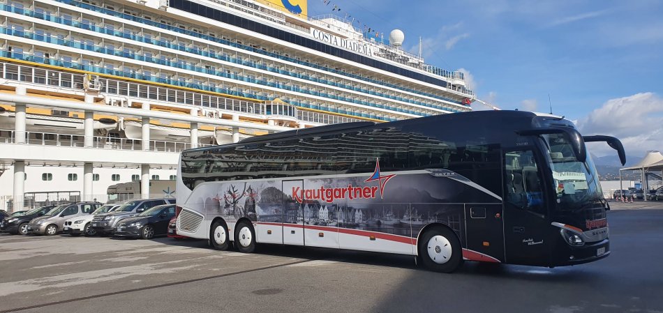 Unsere moderne Busflotte umfasst über 60 Fahrzeuge und vereint höchsten Komfort, neueste Technik und nachhaltige Mobilität. Mit unseren 4- & 5-Sterne-Fernreisebussen im exklusiven Krautgarnter-Design, verziert mit schwarz-weißen Reisefotos und der markanten roten Linie, sind wir in ganz Europa unterwegs –mit 45 bis 80 Sitzplätzen ideal für Gruppenreisen, Firmenausflüge und Busreisen durch Österreich und Europa.