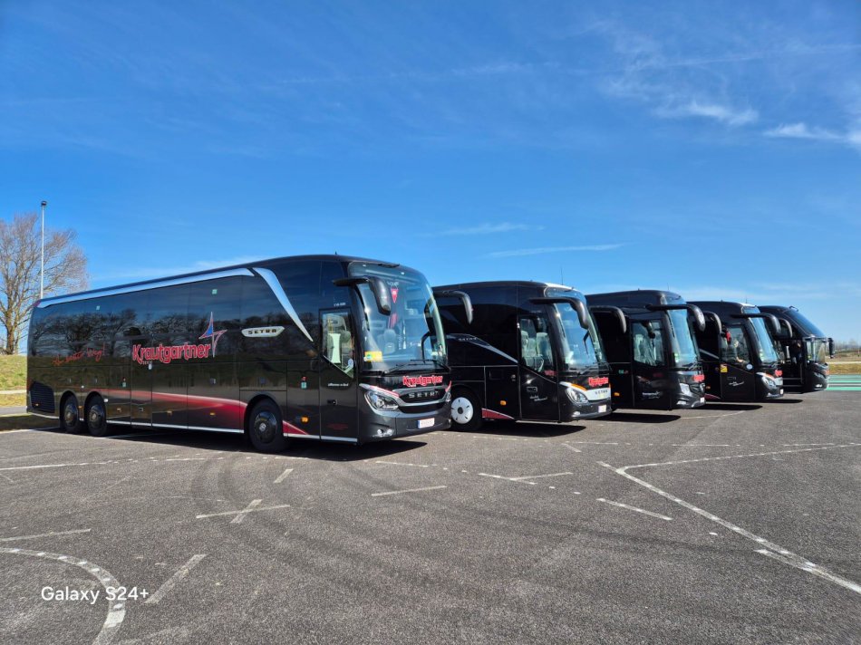 Unsere neuesten Fernreisebusse bieten Ihnen ein Maximum an Sitzabstand und limitierte Sitzplatzanzahl. Mit nur 45 - 50 Sitzplätzen, 2 Kühlschränken und einem Panoramadach sowie den bewährten Klapptischen und Fußrastern reisen Sie noch komfortabler!