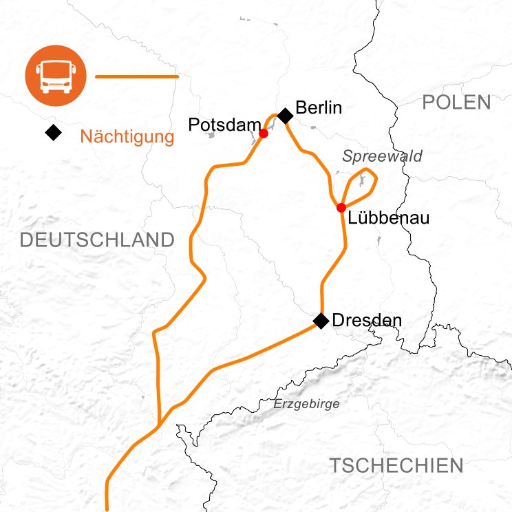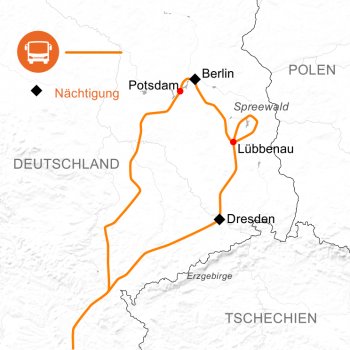 Die Höhepunkte dieser Reise sind die Metropolen Dresden - das „Deutsche Florenz“ und Berlin - die pulsierende Großstadt von Weltruhm. Während die Hauptstadt Sachsens sich durch renommierte Kunstmuseen und die klassische Architektur auszeichnet, beeindruckt Berlin mit historischen Bauwerken (z.B. Holocaust-Mahnmal, Überreste der Berliner Mauer) sowie weltberühmten Sehenswürdigkeiten wie dem Brandenburger Tor oder dem Reichstagsgebäude. Wir zeigen Ihnen die schönsten und interessantesten Teile der beiden Städte. Im nahe gelegenen Spreewald erkunden wir das eigenwilligste und vielfältigste Naturgebiet Mitteleuropas mit einer einzigartigen Wasserlandschaft.