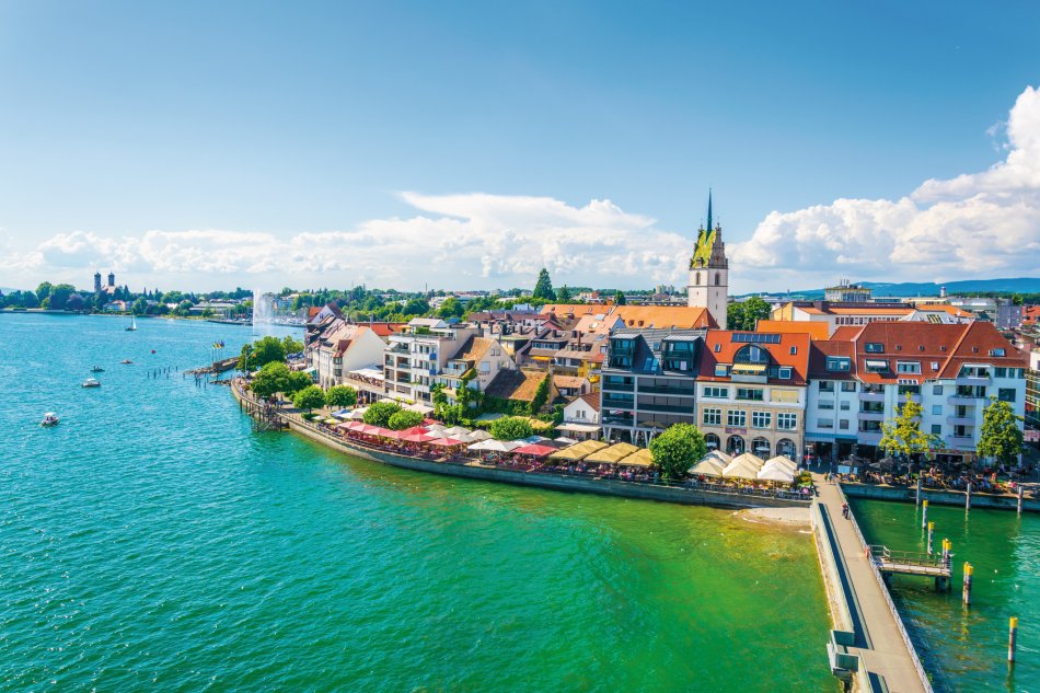 An den Ufern des Bodensees spiegeln sich sanft bewaldete Hügellandschaften, gespickt mit glanzvollen Städten und zahlreichen barocken Klöstern und Bauwerken. Der Reichtum an Naturschönheiten und das milde Klima machen den Bodenseeraum zum Anziehungspunkt vieler Besucher.