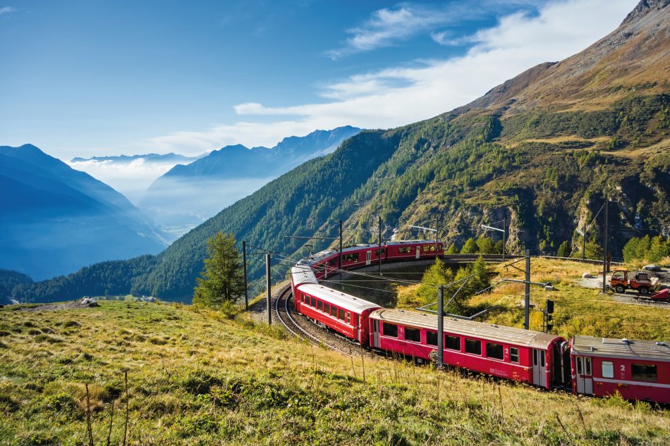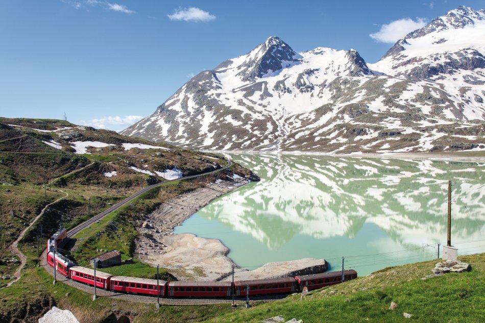 Der Bernina Express ist ein Schnellzug der Rhätischen Bahn, welcher als einziger Zug in der Schweiz eine Alpenüberquerung absolviert. Die befahrene Strecke der Albulabahn und Berninabahn wurde im Sommer 2008 als UNESCO-Welterbe ausgezeichnet.