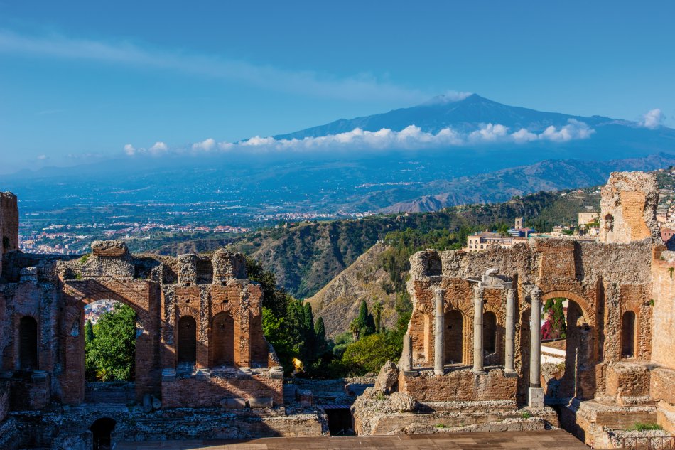 Entlang von Weingärten, Zitronenhainen und Lavafeldern fahren Sie heute Vormittag auf etwa 1.900 Meter Seehöhe, um die Silvestri Krater zu Fuß zu erkunden. Von hier haben Sie einen fantastischen Ausblick auf die Küste des Ionischen Meeres. Wer noch höher hinauf möchte, kann optional und je nach Wetterlage mit der Seilbahn und einem Jeep auf 3.000 Meter fahren (ca. 78,- pro Person), um die beeindruckende Kraterlandschaft des höchsten aktiven Vulkans Europas zu erleben. Am Fuße des Ätnas befindet sich das bekannte Weingut Gambino, das Sie im Anschluss besuchen. Hier verkosten Sie typisch sizilianische Spezialitäten und natürlich den ausgezeichneten Wein. Zum Abschluss des Tages besichtigen Sie die mondäne Stadt Taormina an den Hängen des Monte Tauro. Der Blick vom griechisch-römischen Theater (Eintritt nicht inkludiert) Richtung Ätna zählt zu den bekanntesten Fotomotiven der Insel. Nächtigung im Raum Giardini Naxos.