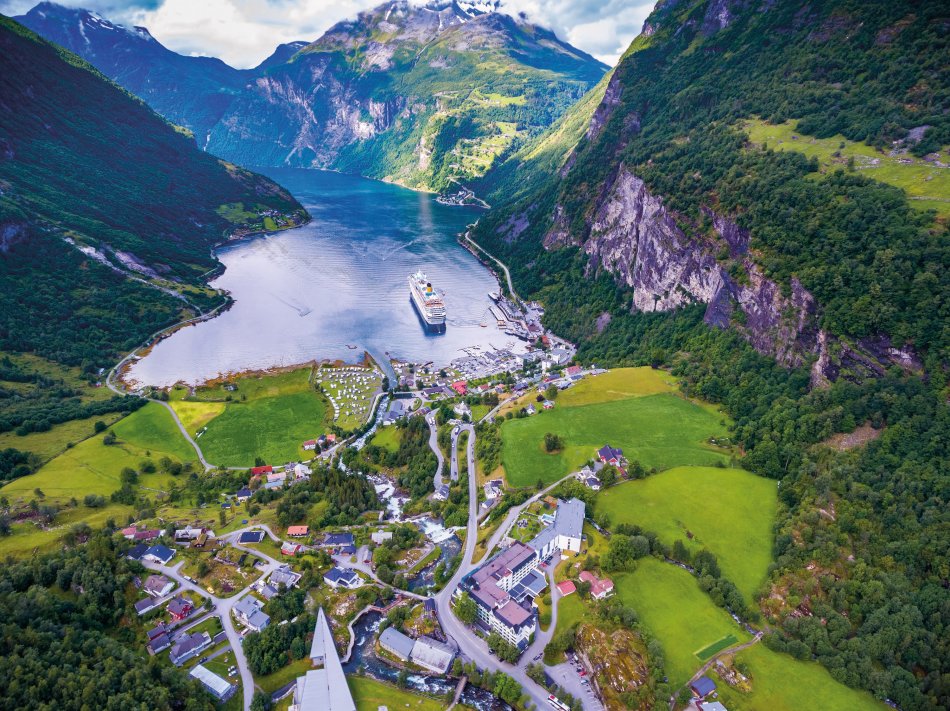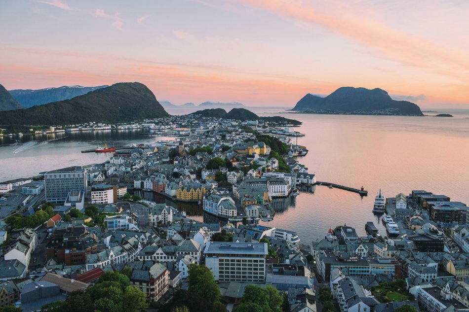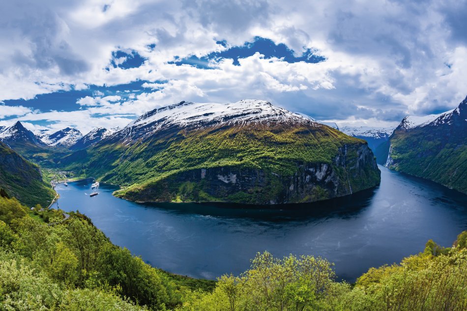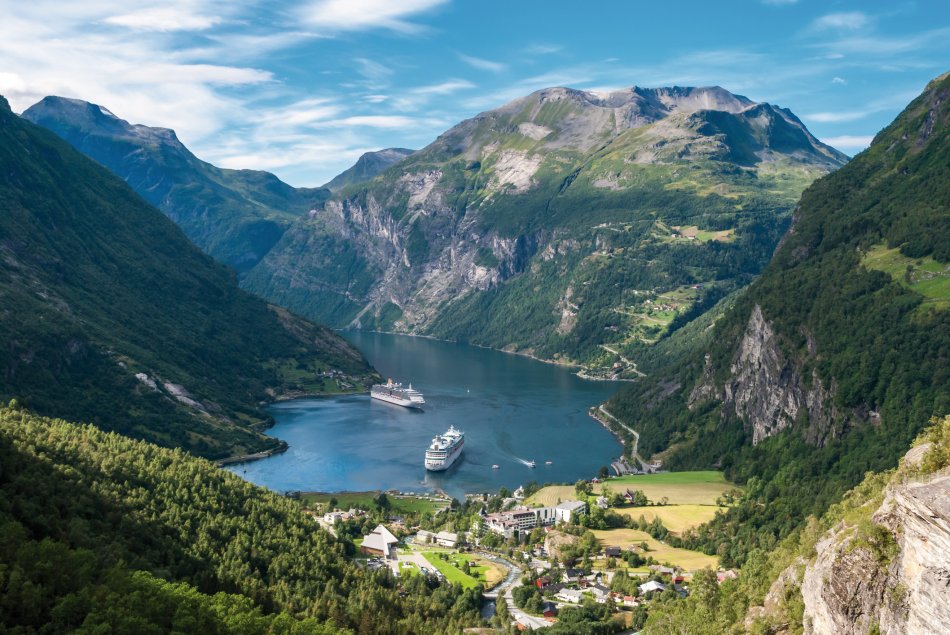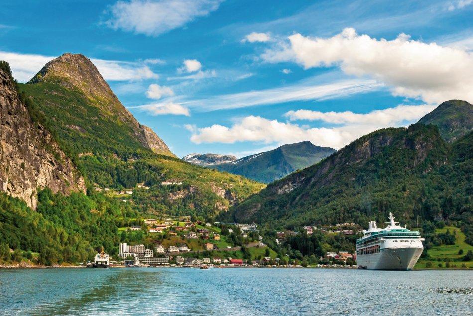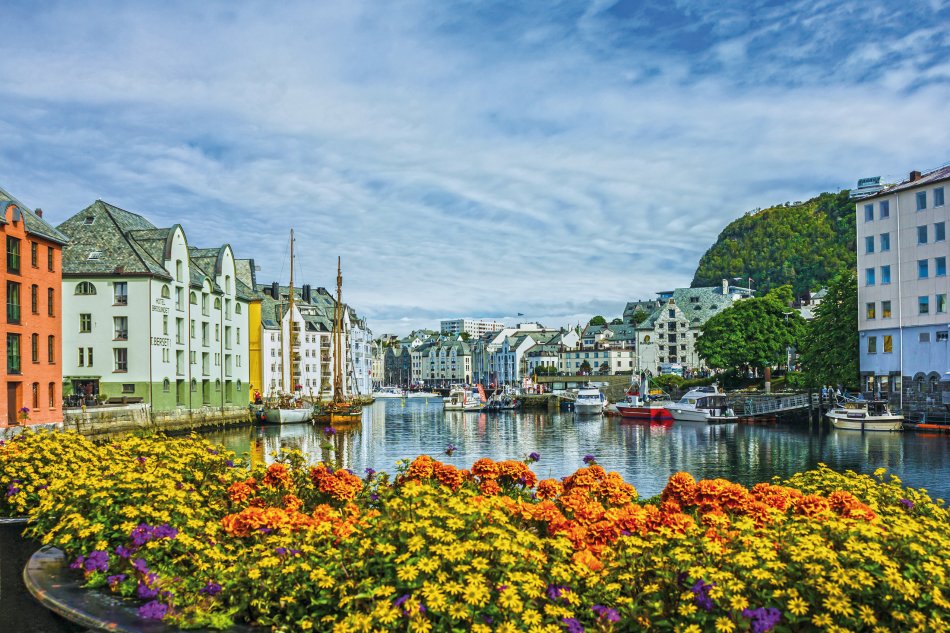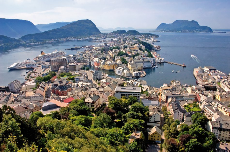 Vormittags umfahren Sie die Ausläufer des Jostedals Gletschers, um gegen Mittag den Geirangerfjord zu erreichen. Bei einer wunderschönen Schiffsfahrt durch den berühmten Geirangerfjord bestaunen Sie steile Felswände und zauberhafte Wasserfälle, wie den „Brautschleier“. Entlang der Adlerstraße erreichen Sie den Aussichtspunkt Ørnesvingen, mit traumhaftem Ausblick auf den Ort Geiraner und den Fjord. Nach einer Fährüberfahrt über den Storfjord, Fahrt nach Ålesund. Übernachtung in Ålesund.