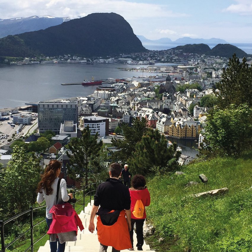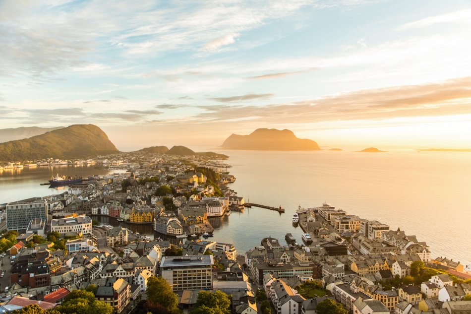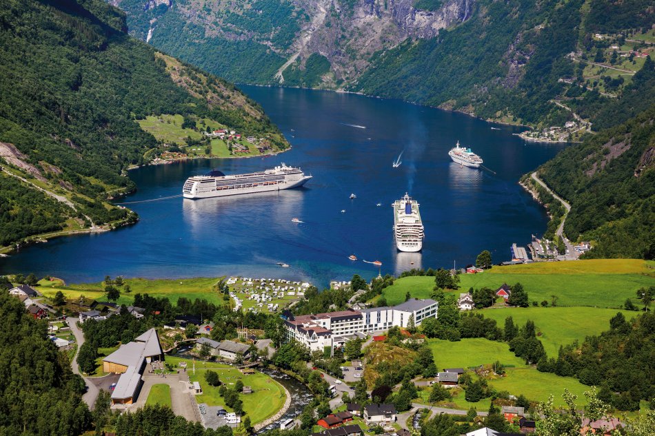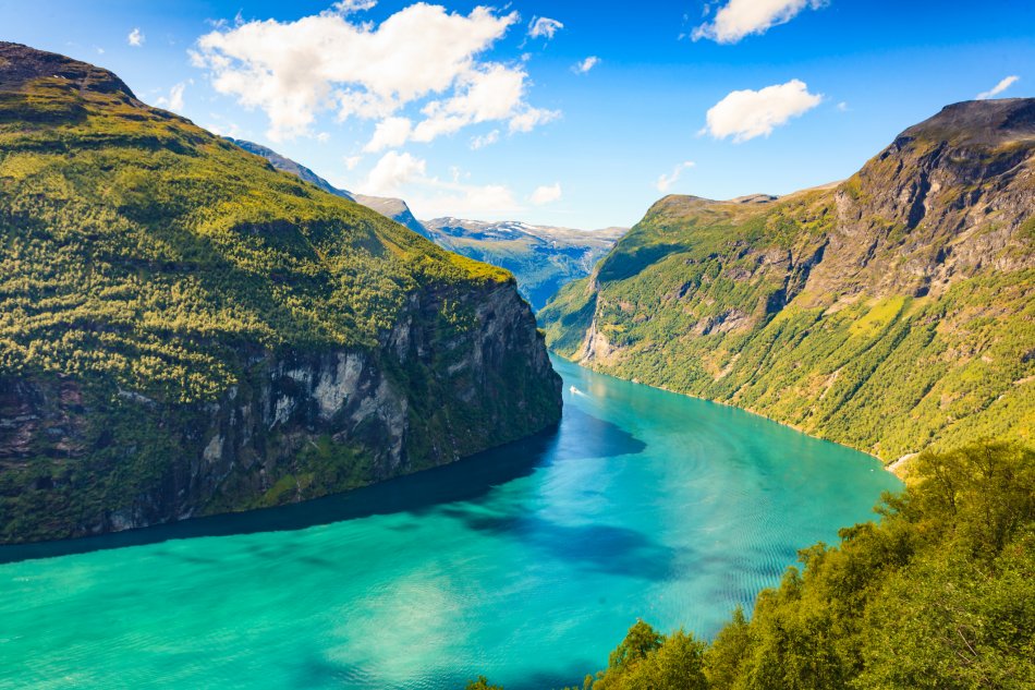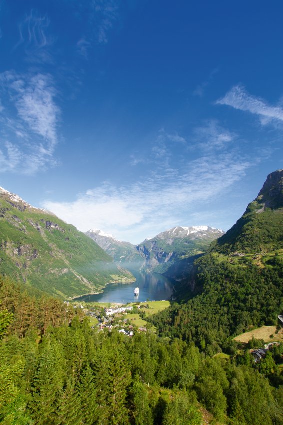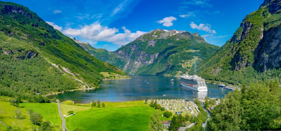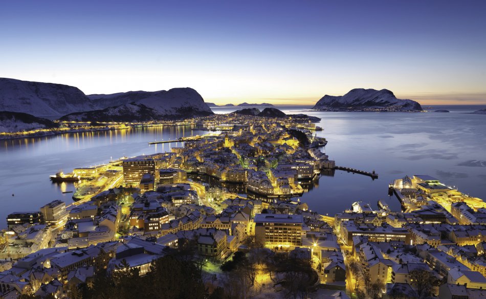 Vormittags umfahren Sie die Ausläufer des Jostedals Gletschers, um gegen Mittag den Geirangerfjord zu erreichen. Bei einer wunderschönen Schiffsfahrt durch den berühmten Geirangerfjord bestaunen Sie steile Felswände und zauberhafte Wasserfälle, wie den „Brautschleier“. Entlang der Adlerstraße erreichen Sie den Aussichtspunkt Ørnesvingen, mit traumhaftem Ausblick auf den Ort Geiraner und den Fjord. Nach einer Fährüberfahrt über den Storfjord, Fahrt nach Ålesund. Übernachtung in Ålesund.