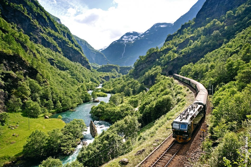 Zeitig am Morgen fahren Sie in die spektakuläre Fjordregion Norwegens. Durch den 24 km langen Lærdalstunnel erreichen Sie Flåm am Aurlandsfjord. Hier haben Sie die Möglichkeit, mit der berühmten Flåmbahn (nicht inkludiert) nach Myrdal zu fahren. Die Strecke führt Sie auf 866 Meter Seehöhe und zählt zu den schönsten Bahnstrecken Skandinaviens. Anschließend fahren Sie entlang der Bergenbahnstrecke durch die Hochebene Hardangervidda nach Geilo, wo der Bus schon auf Sie wartet. Übernachtung im Raum Geilo.