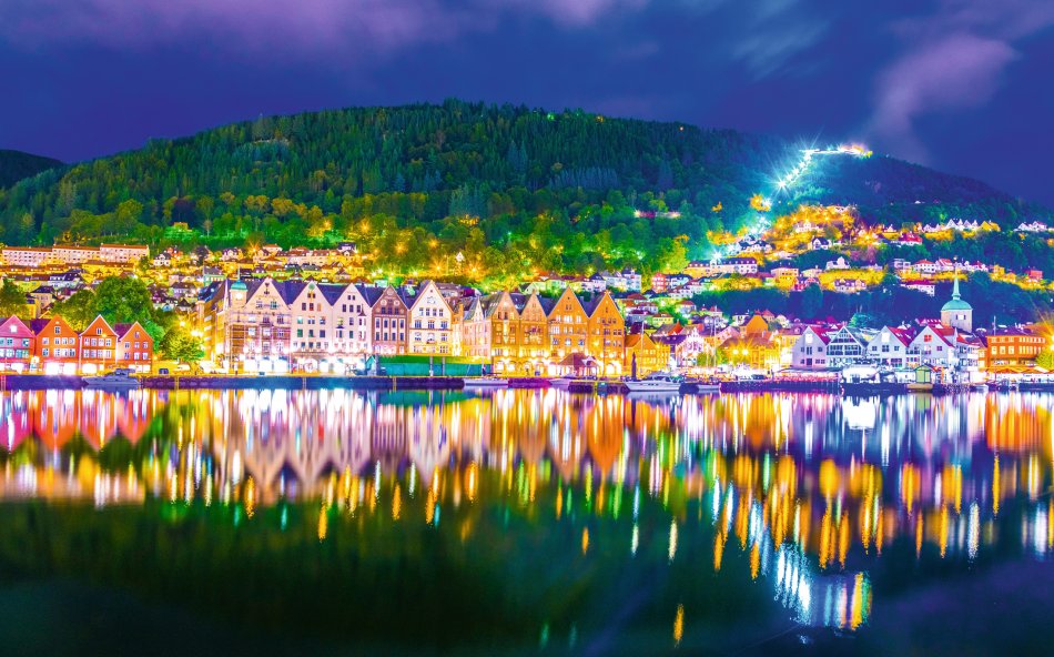 Bei einer interessanten Stadtrundfahrt durch Bergen sehen Sie Bryggen, die Festung Bergenhus und die Marienkirche. Fährüberfahrt über den Sognefjord, längster und tiefster Fjord Europas. Die Region zählt zum UNESCO-Weltnaturerbe. Nächtigung im Raum Førde