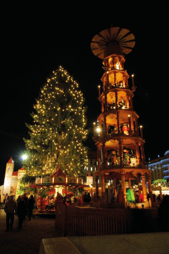 Der Advent ist Dresdens fünfte Jahreszeit. Seit dem Jahr 1434 wird das Zentrum der Elbstadt beim "Dresdner Striezelmarkt" weihnachtlich verzaubert. Die weltgrößte erzgebirgische Stufenpyramide und der nicht weniger anmutige Schwibbogen verbreiten ein einizigartiges Flair. Ringsum werden an den festlich dekorierten Marktständen traditionelles Handwerk und Kulinarik angeboten. Lausitzer Blaudruckstoffe, Erzgebirgische Holzkunst, Pulsnitzer Pfefferkuchen oder Herrnhuter Sterne gehören ebenso wie der Original Dresdner Christstollen zum Adventerlebnis.