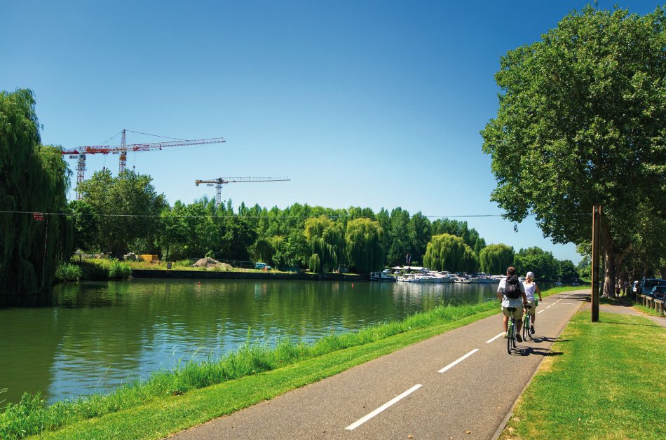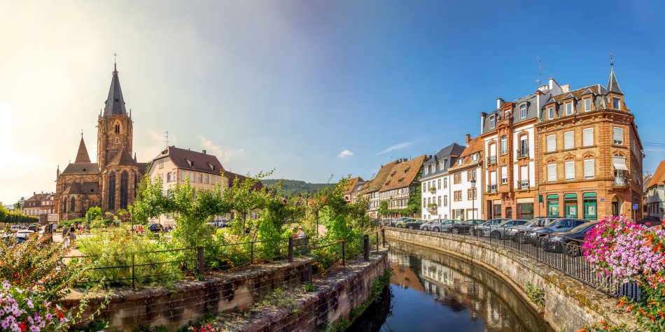 Busfahrt nach Obernai. Die Stadt ist eine der wenigen elsässischen Kleinstädte, in denen noch Befestigungsanlagen mit Stadtmauern und Türmen erhalten sind. Wir radeln nach Molsheim, wo wir das Fleischer Zunfthaus Metzig sehen. Weiter geht es zum Canal de la Bruche, dem wir bis nach Straßburg folgen. Zimmerbezug in Straßburg für die letzte Übernachtung. Bei einem typischen Flammkuchenessen lassen wir den Tag gemeinsam ausklingen.