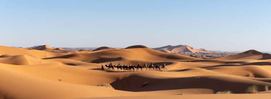 Heute geht es zu den spektakulären Dadès-Schluchten. Weiterfahrt nach Tinghir, wo Sie die imposanten Todra-Schluchten erwarten, welche bis zu 300 m hoch sind! Mittagessen unterwegs (optional), anschließend Fahrt nach Erfoud über Tinjedad. Abendliche Ankunft, Check-In und Dinner im Hotel. Optional: Übernachtung im Wüstenbivak von Merzouga - mit 4x4-Fahrt oder Kamelritt zu den Dünen von Erg Chebbi.